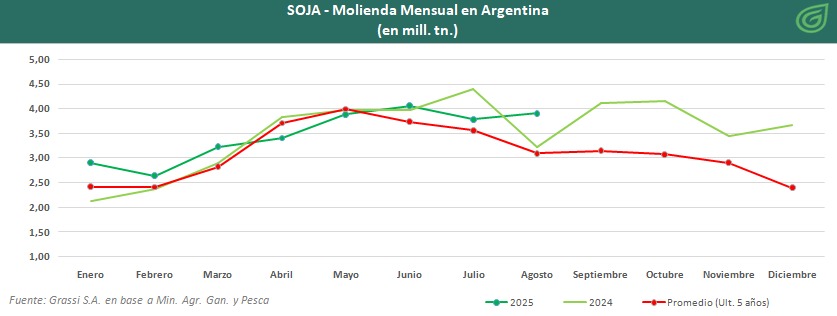 La industria suele procesar promedio 3 mill. tn. mensuales en oct/nov/dic. y podría incrementarse con la mejora de precios al productor (incentivando ventas) y márgenes positivos de la industria(¿4 mill. tn de molienda mensual?). De darse esos niveles y algo más de exportación de poroto para completar esas 9 mill. tn. proyectadas, podríamos ir hacia un final de campaña con stocks ajustados y precios firmes, con spread entre cosechas que se mantengan lógicos.