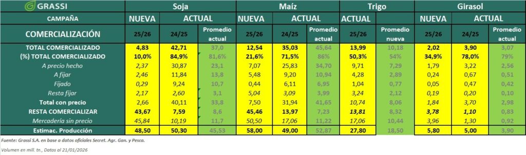 Avance de comercialización ARG al 21/01/2026.