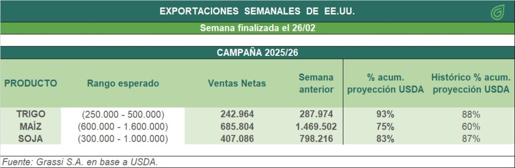 Exportaciones apenas fuera de las expectativas del mercado. El acumulado se encuentra adelantado 5 p.p. al histórico.