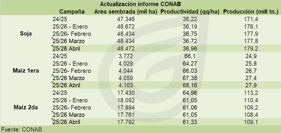 Ajuste al alza en la producción, variación positiva en rindes y área sembrada que acompaña las subas.